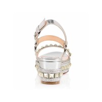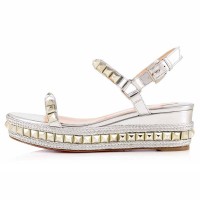 Inspired by 1970s-era espadrilles, Christian Louboutin's Cataclou sandals exude freshness and ease. Crafted from silver specchio leather and adorned with silver braiding and pyramid studs, their straps cradle the foot for edgy refinement mounted on a 60mm heel.